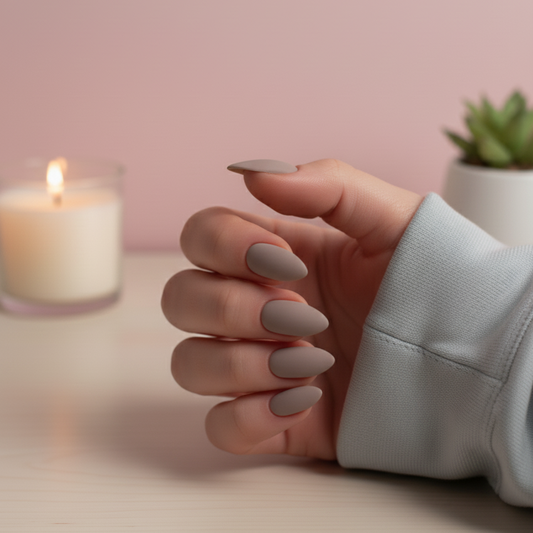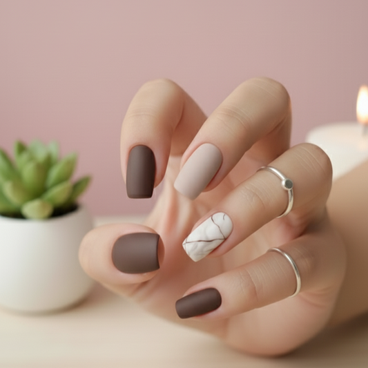 Shades of Brown, Abstract with Nail Glue + Nail Glue Sticker | Long, Almond Press On Nails