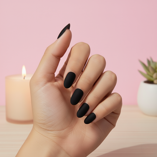 Midnight Mystery | Matte Black Medium Round Press-On Nails