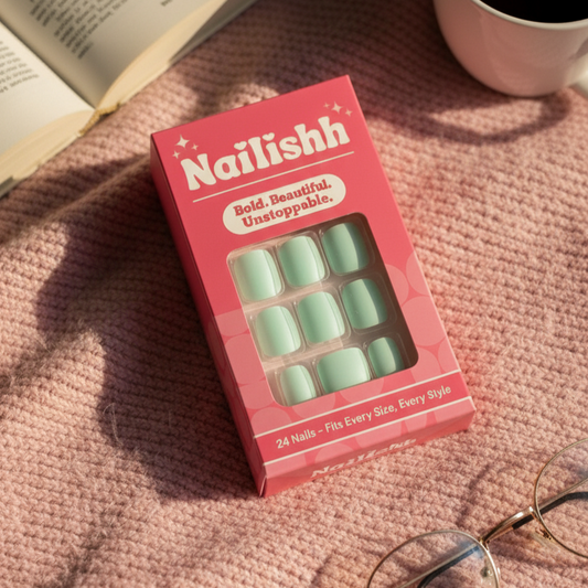 Green Glow Matte with Nail Glue + Nail Glue Sticker | Short, Square Press-On Nails