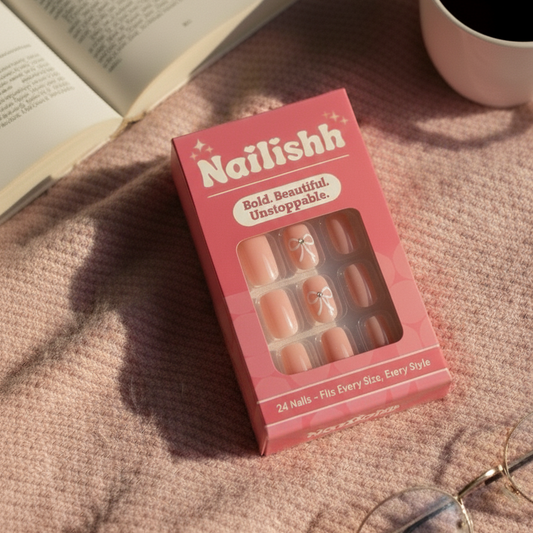 Flirty Bow | Glossy Almond Pink Press on Nails