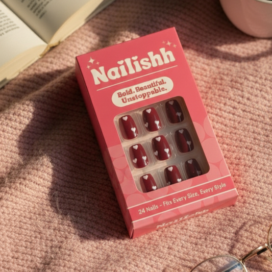 Ruby Glow | Squoval Short Glossy Press On Nails.
